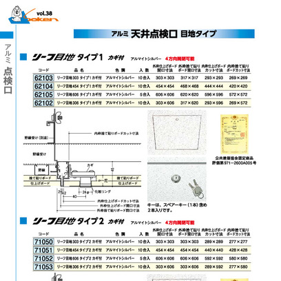 創建 アルミ 天井点検口(目地タイプ) リーフ目地303 タイプ2( アルマイトシルバー) カギ付 吊り金具タイプ