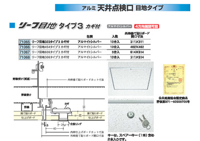 創建 アルミ 天井点検口(目地タイプ) リーフ目地 タイプ3(アルマイトシルバー) カギ付 吊り金具タイプ 創建