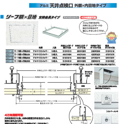 創建 アルミ天井点検口(外額×内目地タイプ) リーフ額×目地(アルマイトシルバー) 支持金具タイプ 創建