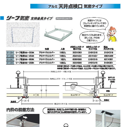 創建 アルミ天井点検口(気密タイプ) リーフ気密SS・ (アルマイトシルバー) 支持金具タイプ
