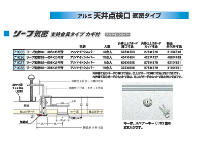 創建 アルミ天井点検口(気密タイプ) リーフ気密SS・ (アルマイトシルバー) カギ付 支持金具タイプ 創建