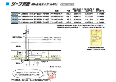 ・吊り金具タイプカギ付・特長:気密タイプにはゴムパッキンがついており気密性に優れています。
