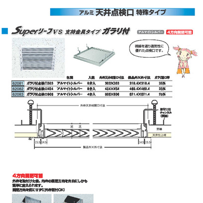 創建 アルミ天井点検口(特殊タイプ) ガラリ付点検口(アルマイトシルバー) 支持金具タイプ 創建