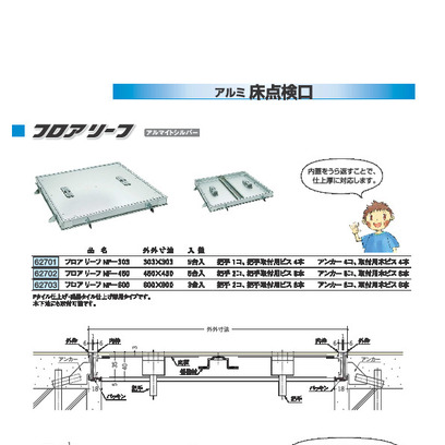 床材開口寸法サイズ(mm):(NF-303)303×303・(NF-450)450×450・(NF-606)600×600