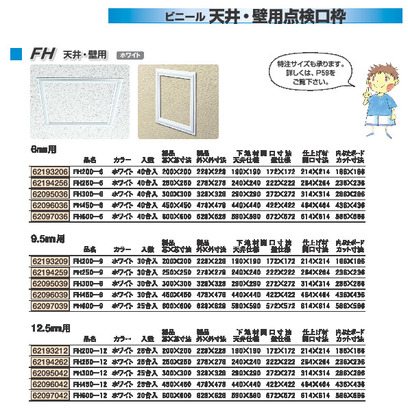 ビニール天井・壁用点検口枠(9.5mm用) FH-9 ホワイト