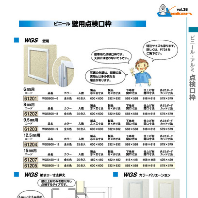 ビニール壁用点検口枠(8mm用) WGS600-8 600mm×600mm カラー全6色