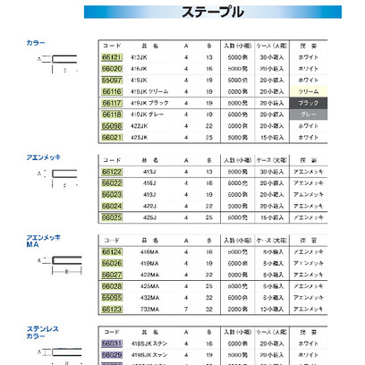 ステープルステンレスカラーJ線 肩幅4mm×足長16mm ホワイト~ 5000本/小箱 創建