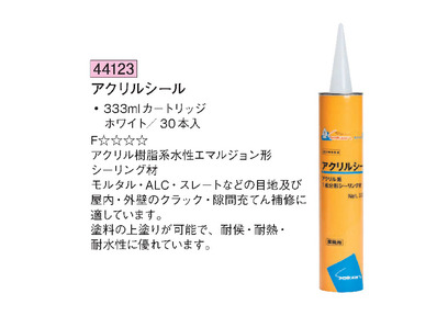 ●F☆☆☆☆ アクリル樹脂系水性エマルジョン形シーリング材●内容量:333mlカートリッジ●色ホワイト●適用箇所:モルタル,ALC,スレートなどの目地充てん及び屋外,外壁のクラック,隙間充てん補修に適しています。●特長:塗料の上塗りが可能で耐候,耐熱,耐水性に優れている。