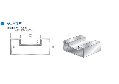 GL定木 GL用定木アルミ定木60 アルマイトシルバー 長さ1.8m/2.5m