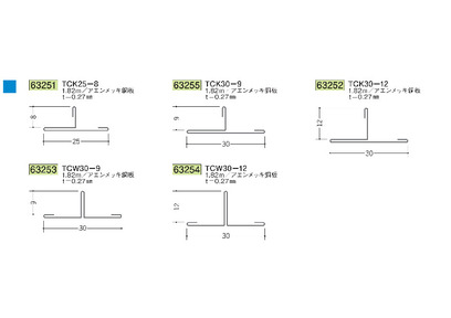 金属折曲げ Tバー 亜鉛折曲TCK25/30・TCW30 アエン 長さ1.82m