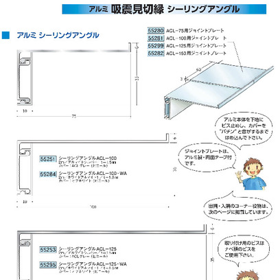 アルミ製吸震見切縁 シーリングアングル ACL-75/100/125/150 アルマイトシルバー 長さ2m 創建