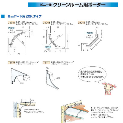 ビニール製クリーンルーム用ボーダー(6mmボード用20Rタイプ) PSR(廻り縁・入隅・巾木・出隅・サイドキャップ) オフホワイト