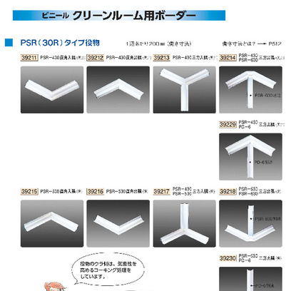 ビニール製クリーンルーム用ボーダー(6mmボード用30Rタイプ) PSR役物(直角出入隅・三方出入隅) オフホワイト