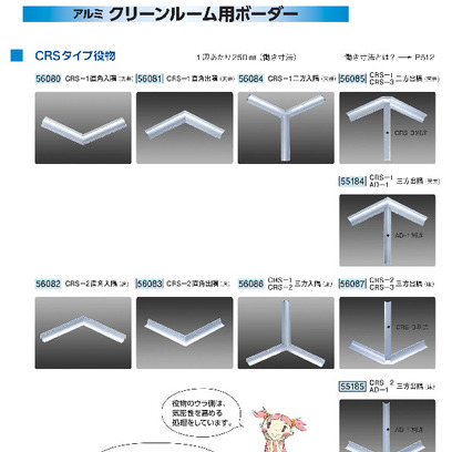 アルミ製クリーンルーム用ボーダー(6mmボード用20Rタイプ) CRS役物(直角出入隅・三方出入隅) アルマイトシルバー