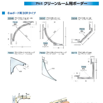 アルミ製クリーンルーム用ボーダー(6mmボード用30Rタイプ) CR(廻り縁・入隅・巾木・出隅・サイドキャップ) アルマイトシルバー