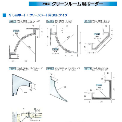 アルミ製クリーンルーム用ボーダー(9.5mmボード+クリーンシート用30Rタイプ) CPB役物(直角出入隅・三方出入隅) アルマイトシルバー