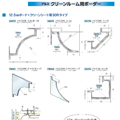アルミ製クリーンルーム用ボーダー(12.5mmボード+クリーンシート用30Rタイプ) CPB(廻り縁・入隅・巾木・出隅・サイドキャップ) アルマイトシルバー