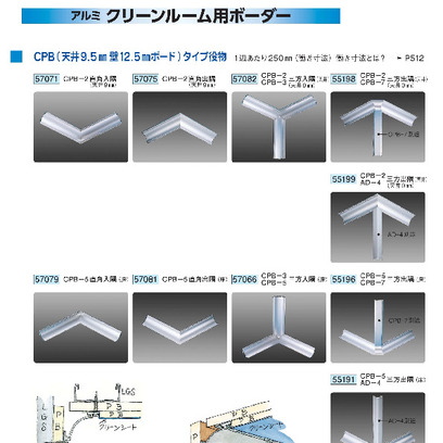 アルミ製クリーンルーム用ボーダー(天井9.5mm壁12.5mmボード+クリーンシート用30Rタイプ) CPB役物(直角出入隅・三方出入隅) アルマイトシルバー