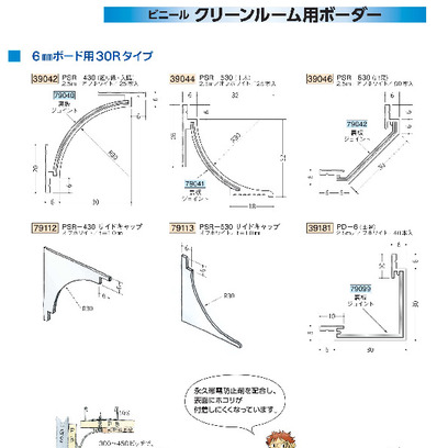 アルミ製クリーンルーム用ボーダー(6mmボード用面取りタイプ巾木30R) CMR(廻り縁・入隅・巾木・出隅・サイドキャップ)アルマイトシルバー