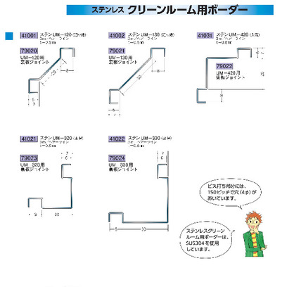 ・ステンレスクリーンルーム用ボーダーは、SUS304を使用しています。・ステンレス製品は1本からカラー仕上げ(焼付塗装)が可能です。