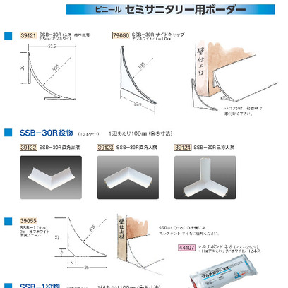 ビニール製セミサニタリー用ボーダー SSB-30Rタイプ (入隅・巾木兼用/サイドキャップ)オフホワイト