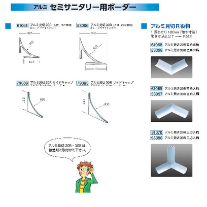 アルミ製セミサニタリー用ボーダー アルミ見切20Rタイプ(入隅・巾木兼用/サイドキャップ) アルマイトシルバー