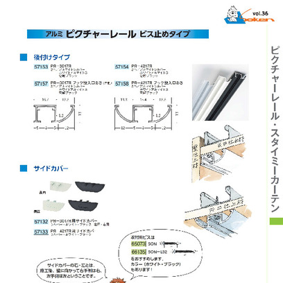 アルミ製ピクチャーレール ビス止めタイプ(後付けタイプ) PR-3017F/4217F アルマイトシルバー ・ホワイトアルマイト3・電解ブラック 長さ3m 創建