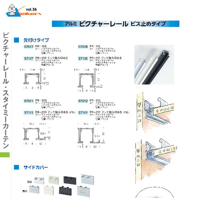 アルミ製ピクチャーレール ビス止めタイプ(先付けタイプ) PR-109/112/209/212 アルマイトシルバー ・ホワイトアルマイト3・電解ブラック 長さ3m 創建