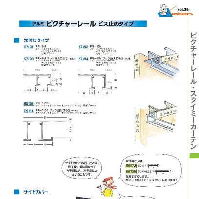 アルミ製ピクチャーレール ビス止めタイプ(先付けタイプ) PR-9M/12M/515S アルマイトシルバー ・ホワイトアルマイト3・電解ブラック 長さ3m 創建