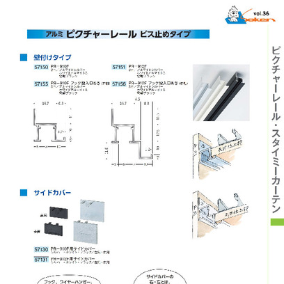 アルミ製ピクチャーレール ビス止めタイプ(壁付けタイプ) PR-910F/912F アルマイトシルバー ・ホワイトアルマイト3・電解ブラック 長さ3m