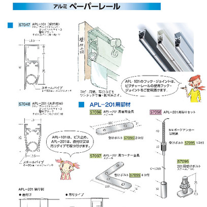 アルミ製ペーパーレール APL-101(壁付用)/APL-201(天井付用) アルマイトシルバー ・ホワイトアルマイト3・電解ブラック 長さ2m