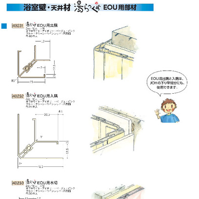 浴室壁・天井材(EOU用部材) 湯らっくすEOU用出隅/入隅/水切 オフホワイト/アイボリー/ベージュ/ピンク/ブルー/グリーン/ワインレッド/木目調 長さ3m