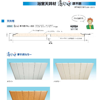 浴室天井材 準不燃(天井用) 湯らっくす準不燃PAL-200 ホワイト/アイボリー/柾目調 長さ1.82m/3m