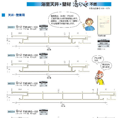 浴室天井・壁材 不燃(天井・壁兼用) 湯らっくす不燃BRF/BRG-100/150 (24色)焼付塗装 長さ2m
