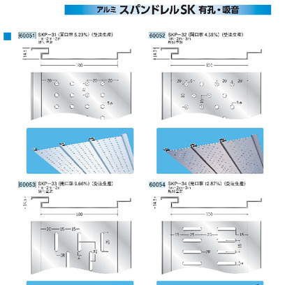 アルミ製スパンドレルSK有孔・吸音【受注生産品】 SKP-31/32/33/34(24色) 焼付塗装 長さ1/2/3m
