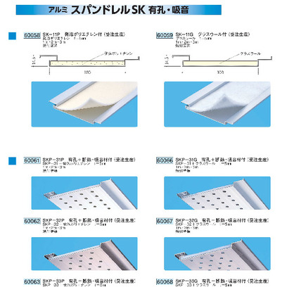 アルミ製スパンドレルSK有孔・吸音【受注生産品】 SK-11P/11G/31P/31G/32P/32G/33P/33G/34P/34G(24色) 焼付塗装 長さ1/2/3m