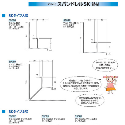 アルミ製スパンドレルSK部材 SKタイプ入隅・SKタイプ水切(24色) 焼付塗装 長さ3m