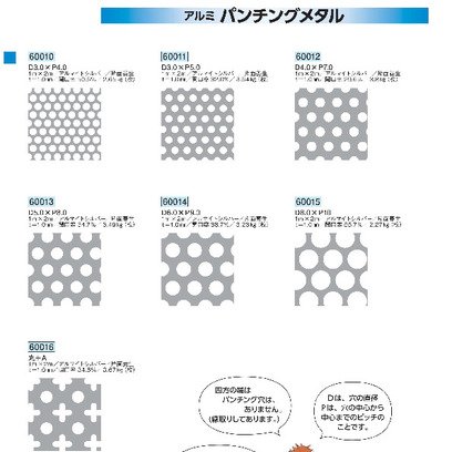 ・Dは、穴の直径Pは、穴の中心から中心までのピッチのことです。