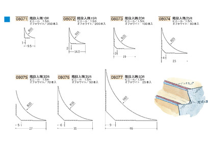 階段部材 ビニール階段入隅 10R~50R オフホワイト 長さ1.5m