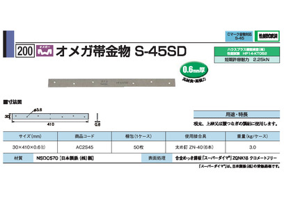 オメガ帯金物 S-45SD 30×410×0.6t 太め釘ZN40付属無し《50枚/ケース》