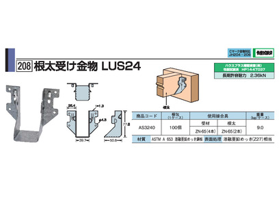 根太受け金物 LUS24 204材 太め釘ZN65付属無し《100個/ケース》