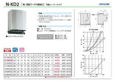 角・深型フード付 100φ~250φ 網付(10メッシュ) N-100KD-A10~250KD-A10 下部開放タイプ シルバーメタリックライト