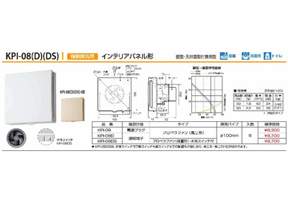排気ファンインテリアパネル形 KPI-08DS(本体スイッチ付) 端子接続 適合パイプφ100 【取扱停止】