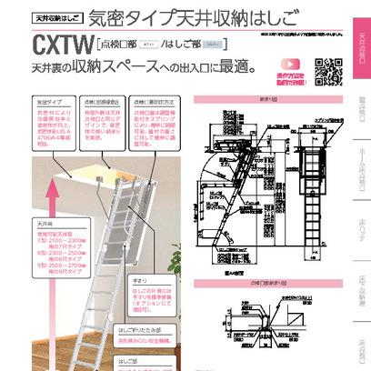 天井収納はしご CXTW 7尺/8尺/9尺 点検口部ホワイト はしご部アルミ ダイケン