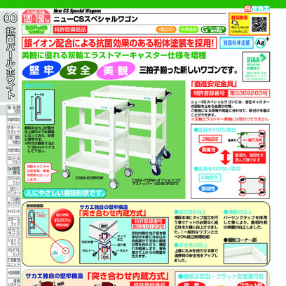 美観に優れる双輪エラストマーキャスター仕様。堅牢・安全・美観三拍子揃った新しいワゴンです。