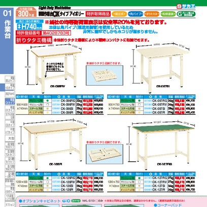 【廃盤】軽量作業台CKタイプ CK-127PI W1200×D750×H740 均等耐荷重300kg 【取扱停止】