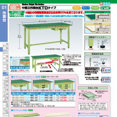 【廃盤】中量立作業台KTDタイプ KTD-493F W1200×D750×H900