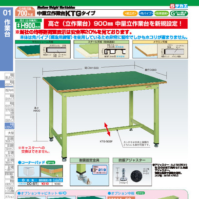 中量タイプの高さ900mm(立作業台)。本体は角パイプ(構造用鋼管)を使用しているため非常に堅牢でしかもホコリが溜まりません。