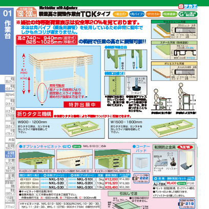 【廃盤】軽量高さ調整作業台TCKタイプ TCK-127S W1200×D750×H740~940 【取扱停止】