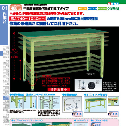 【廃盤】中量高さ調整作業台TKTタイプ TKT-189F W1800×D900×H740~1040